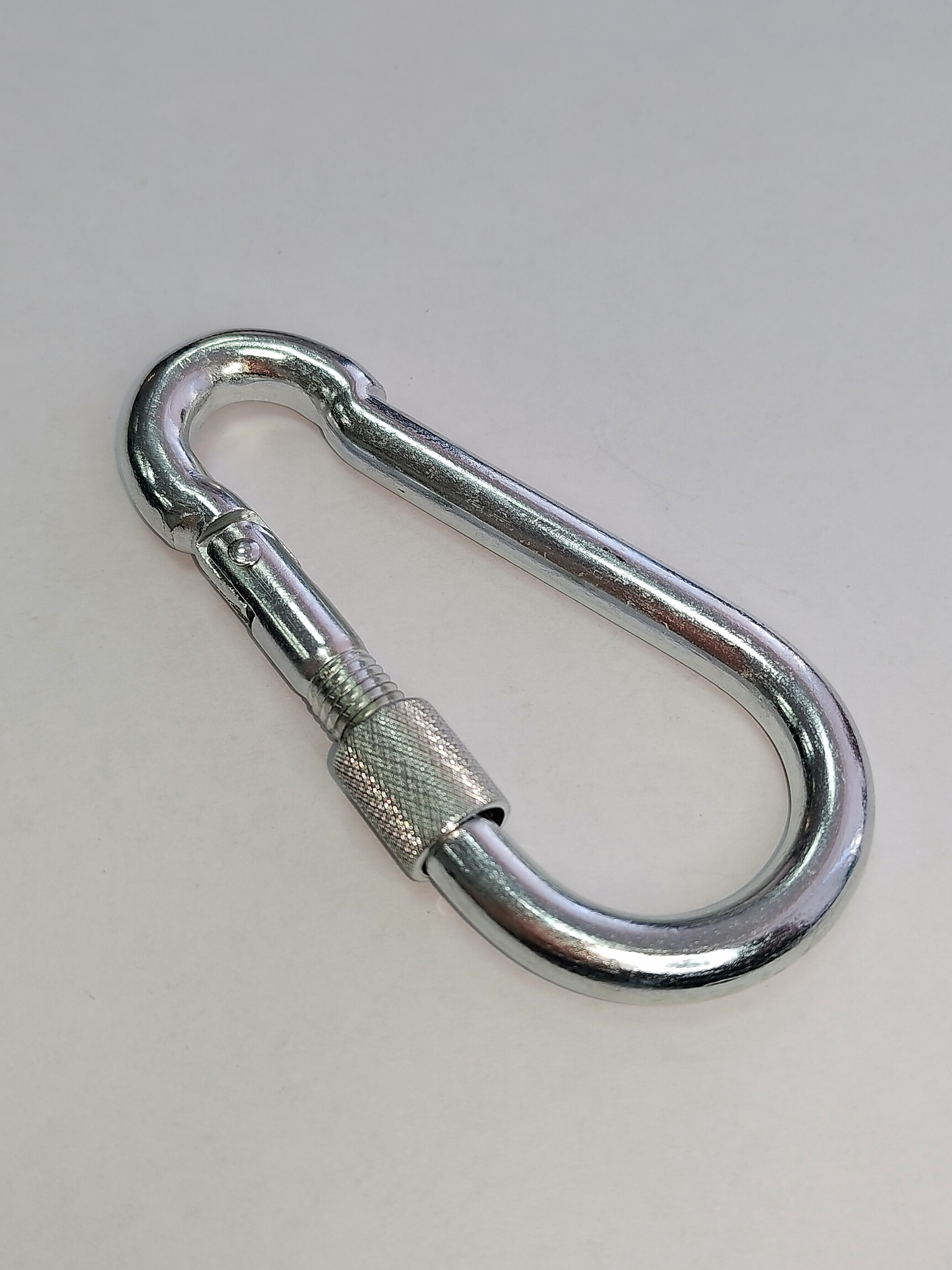 Конструкция с фиксатором (резьбовой муфтой) обеспечивает дополнительную безопасность соединения — карабин не самопроизвольно не откроется под нагрузкой или вибрацией. Это особенно важно при применении в ответственных соединениях, где требуется надёжная фиксация.