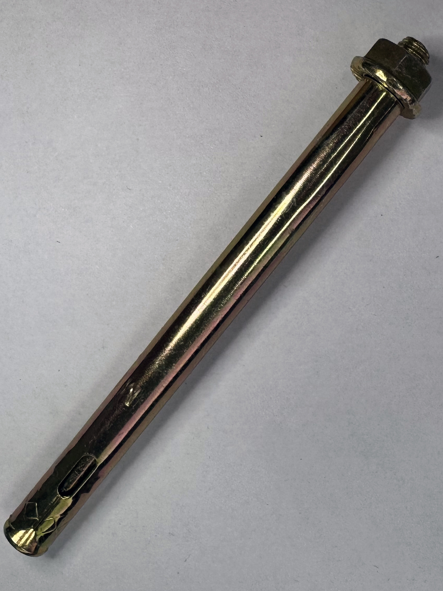 Болт изготовлен из прочной стали с желтопассивированным покрытием, которое защищает металл от коррозии и увеличивает срок службы изделия, даже при эксплуатации во влажных или агрессивных условиях. Конструкция с гайкой обеспечивает надежное и плотное прижатие монтируемых элементов.