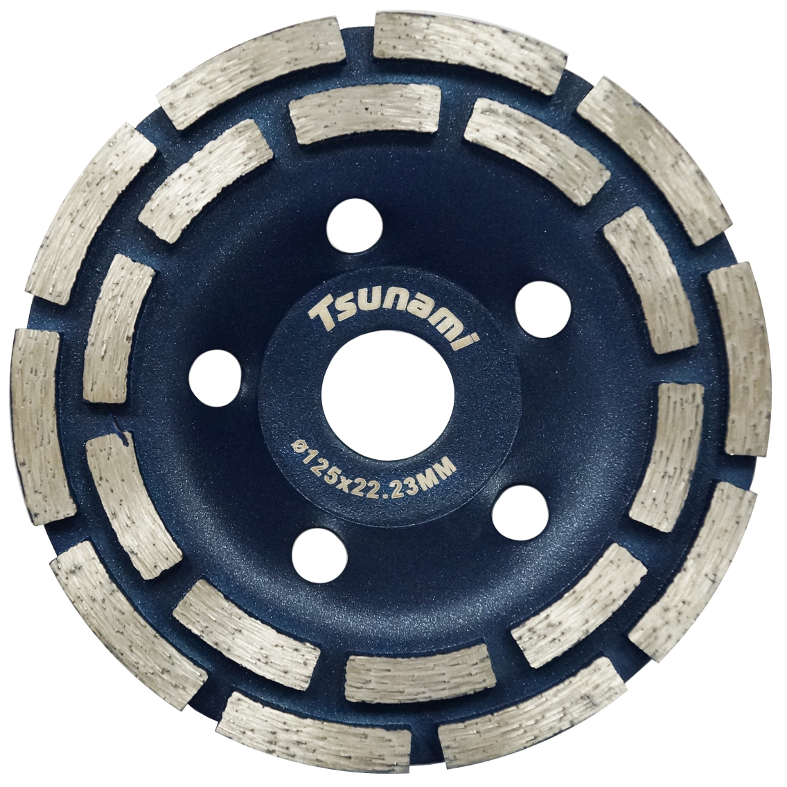 Чашка алмазная двухрядная 125×22,23 мм TSUNAMI — профессиональный инструмент, предназначенный для эффективной шлифовки и обработки бетона, кирпича, камня и других минеральных поверхностей. Благодаря двухрядной конструкции сегментов обеспечивается высокая производительность и стабильный съём материала при сохранении долгого срока службы.