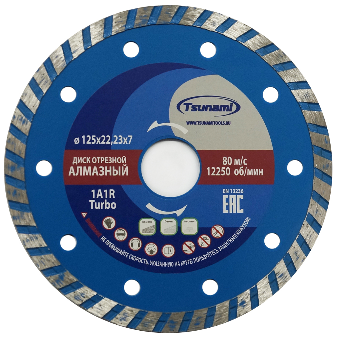 Turbo диск TSUNAMI 125×22,23×7 мм — надежный и производительный отрезной инструмент, предназначенный для быстрой и чистой резки бетона, кирпича, камня и других твердых минеральных материалов. Благодаря турбосегментной кромке диск обеспечивает высокую скорость реза, стабильную работу и эффективное удаление пыли и шлама из зоны резки.