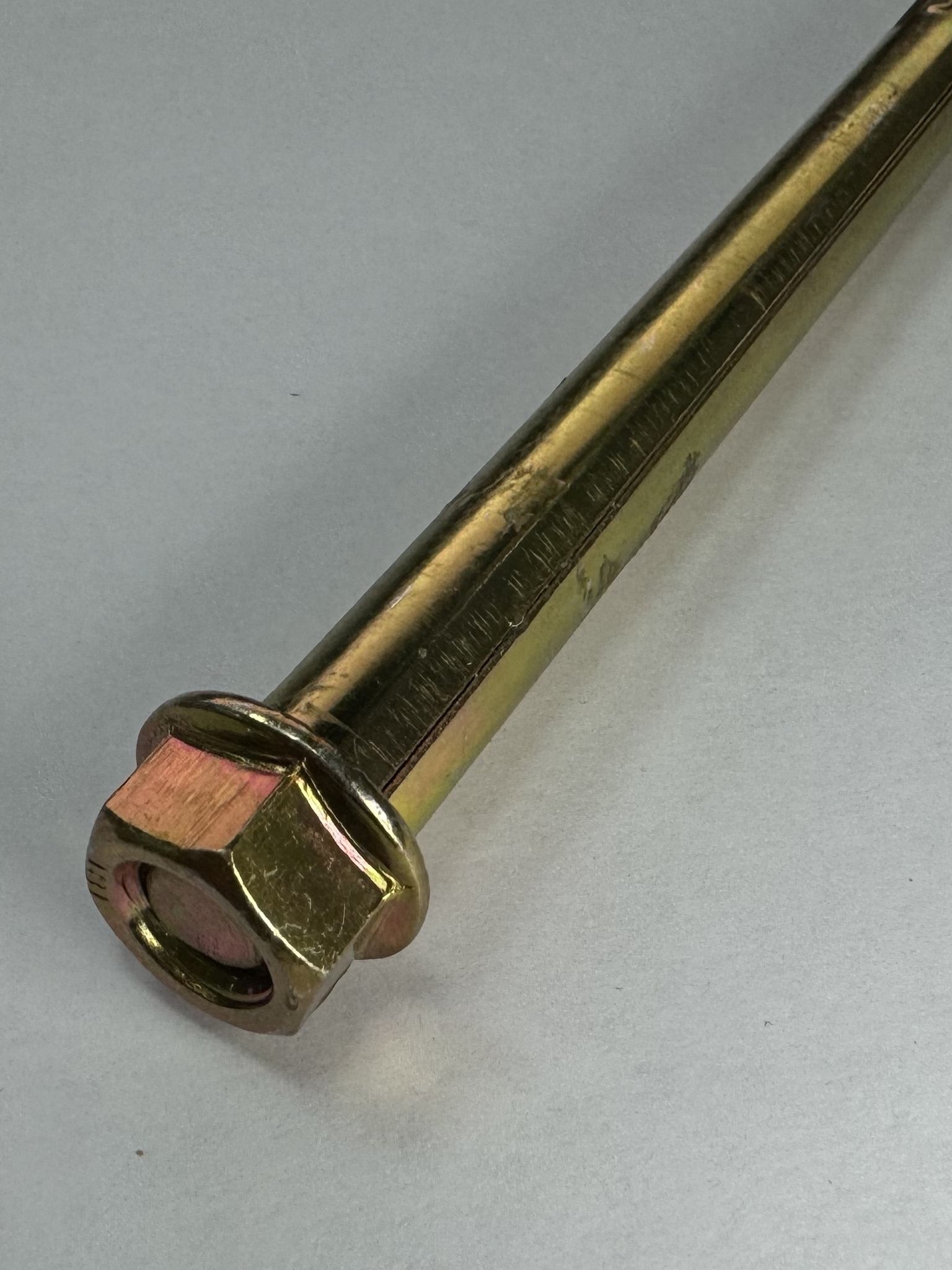 Болт изготовлен из прочной стали с желтопассивированным покрытием, которое защищает металл от коррозии и увеличивает срок службы изделия, даже при эксплуатации во влажных или агрессивных условиях. Конструкция с гайкой обеспечивает надежное и плотное прижатие монтируемых элементов.