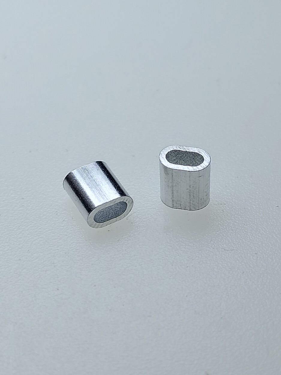 Алюминиевый зажим троса по стандарту DIN 3093 предназначен для надёжной фиксации и соединения стальных и синтетических тросов диаметром 2 мм. Используется для формирования петель, крепления концов троса, а также при монтажных, такелажных и хозяйственных работах.