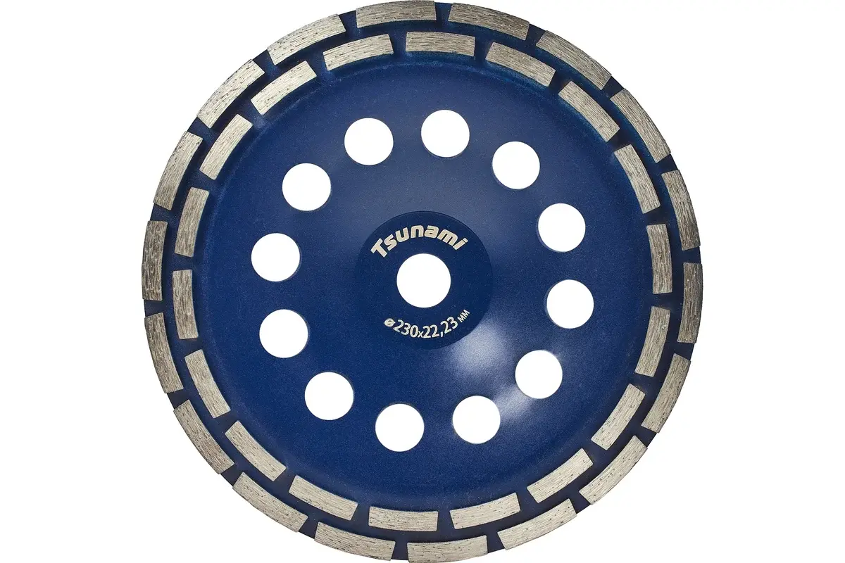 Алмазная чашка 230×22,23 мм двухрядная, предназначена для эффективной и быстрой грубой обработки бетонных, каменных и минеральных поверхностей. Двойной ряд алмазных сегментов обеспечивает стабильный съём материала, высокую скорость шлифовки и длительный срок службы даже при интенсивной эксплуатации. Инструмент подходит для профессионального строительства, ремонта и отделочных работ.