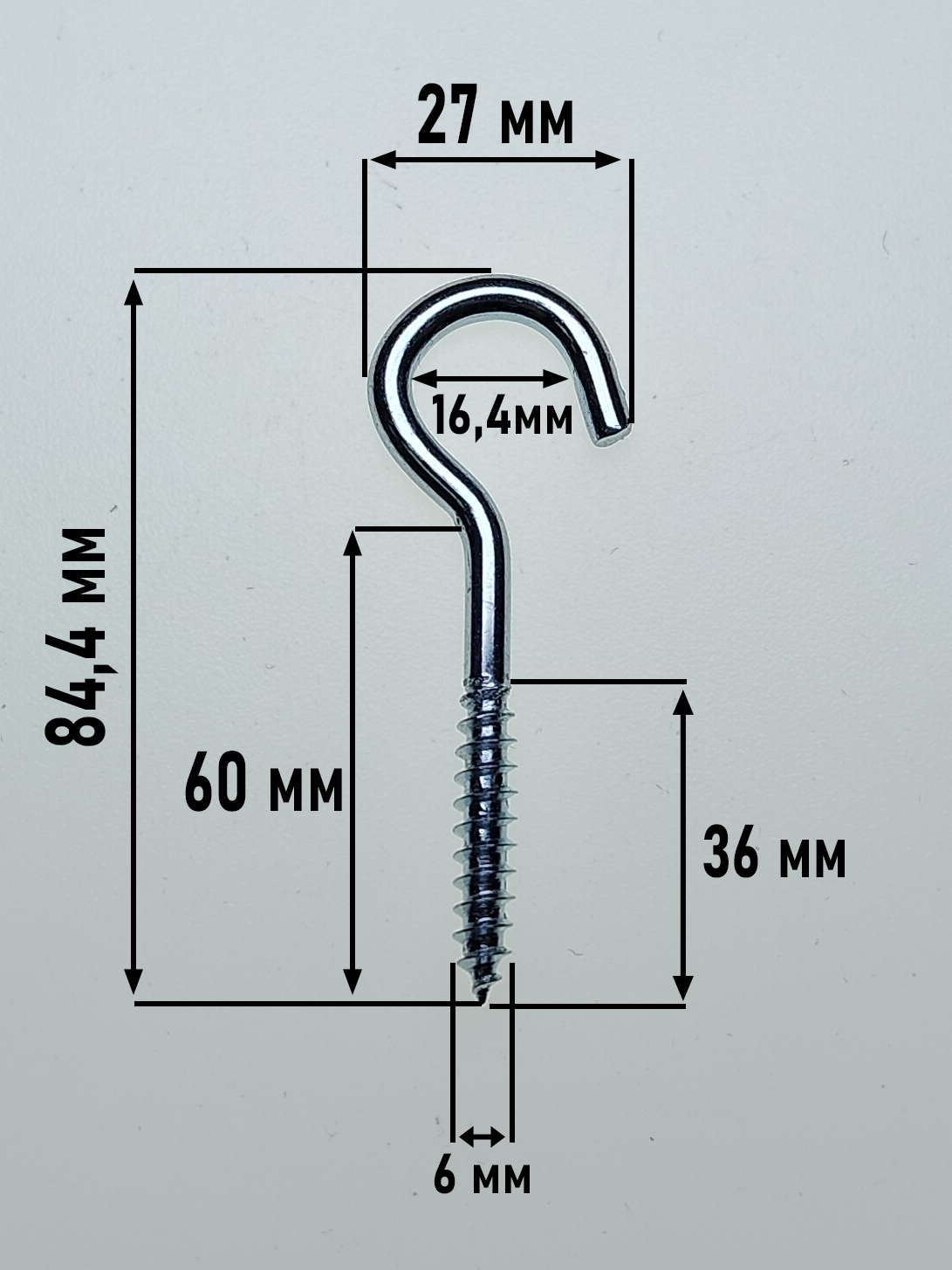 С-образный шуруп-крючок размером 6×60 мм предназначен для удобного и надёжного крепления различных предметов к деревянным основаниям, а также к стенам при использовании подходящего дюбеля. Применяется для подвешивания лёгких и средних нагрузок: кабелей, цепей, тросов, светильников, элементов декора и хозяйственных принадлежностей.