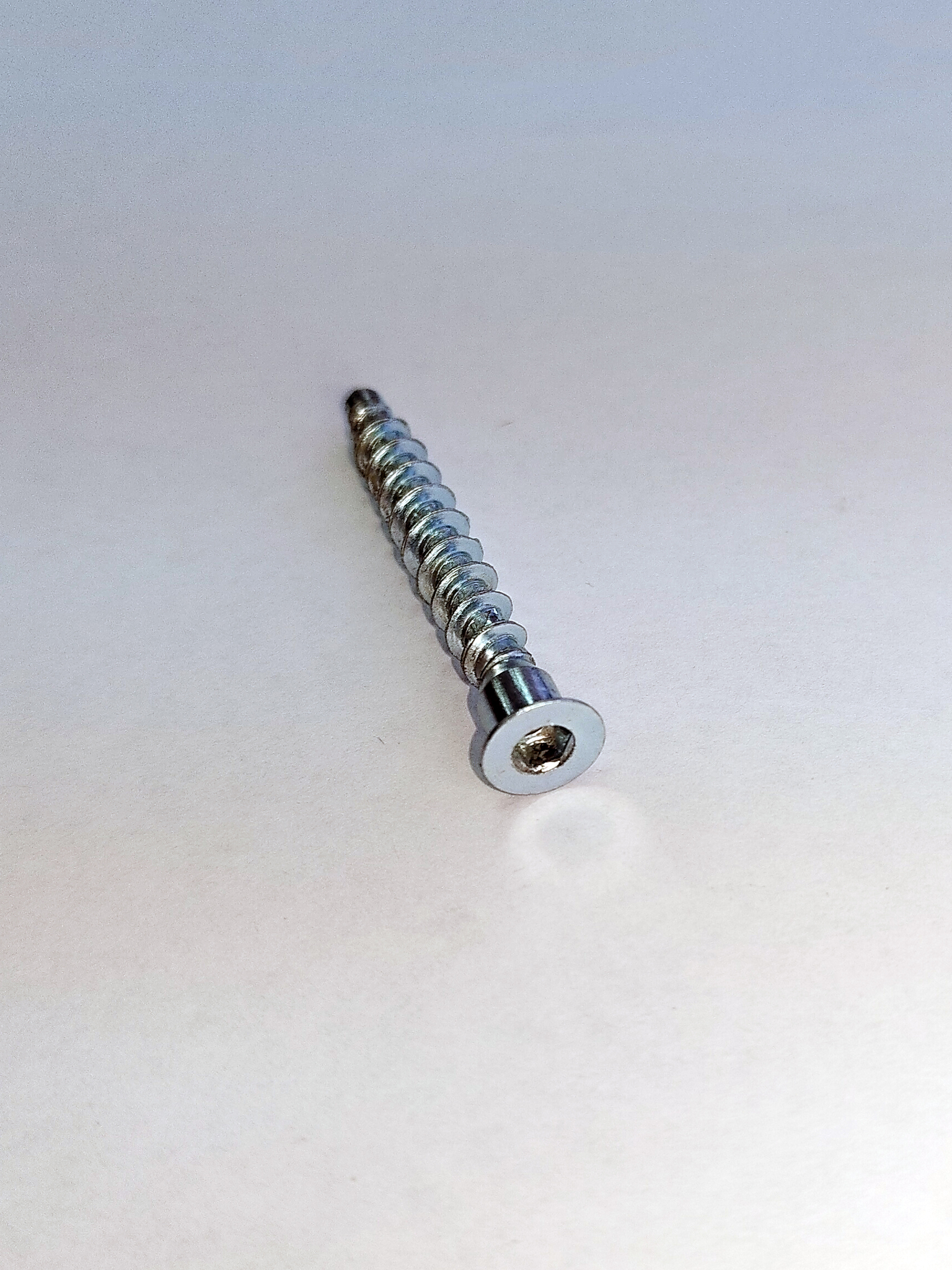 Изготовлен из прочной углеродистой стали и покрыт слоем цинка, что защищает винт от коррозии и продлевает срок службы. Оснащён шестигранным шлицем для надёжной и контролируемой затяжки. Благодаря потайной головке, после монтажа крепёж не выступает над поверхностью и обеспечивает аккуратный внешний вид.