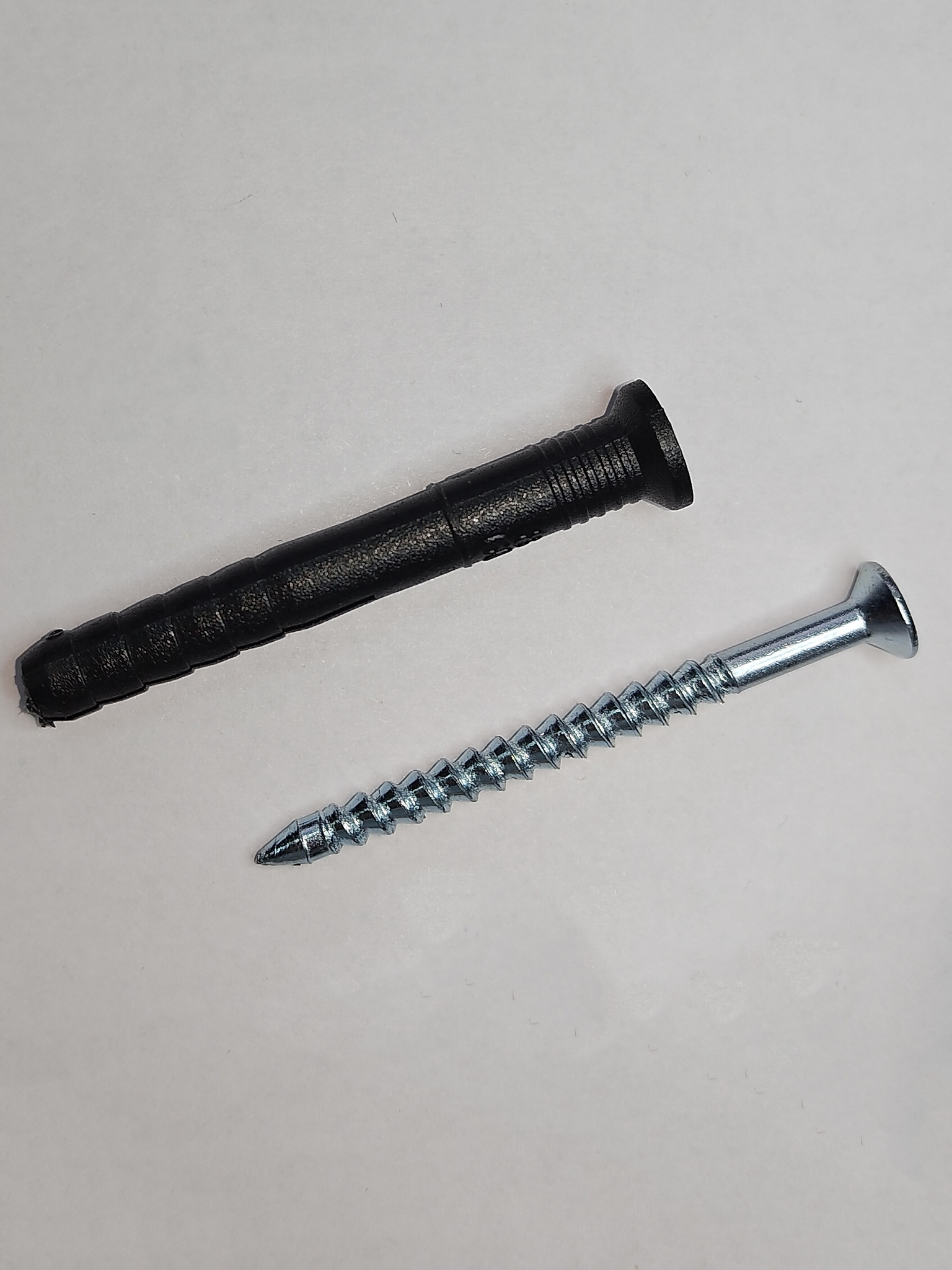 Крепёж состоит из пластикового дюбеля и шурупа-гвоздя из оцинкованной стали с потайной головкой. Данный тип крепежа отличается высокой скоростью монтажа: после установки дюбеля в просверленное отверстие, шуруп просто забивается молотком — без предварительного заворачивания.
