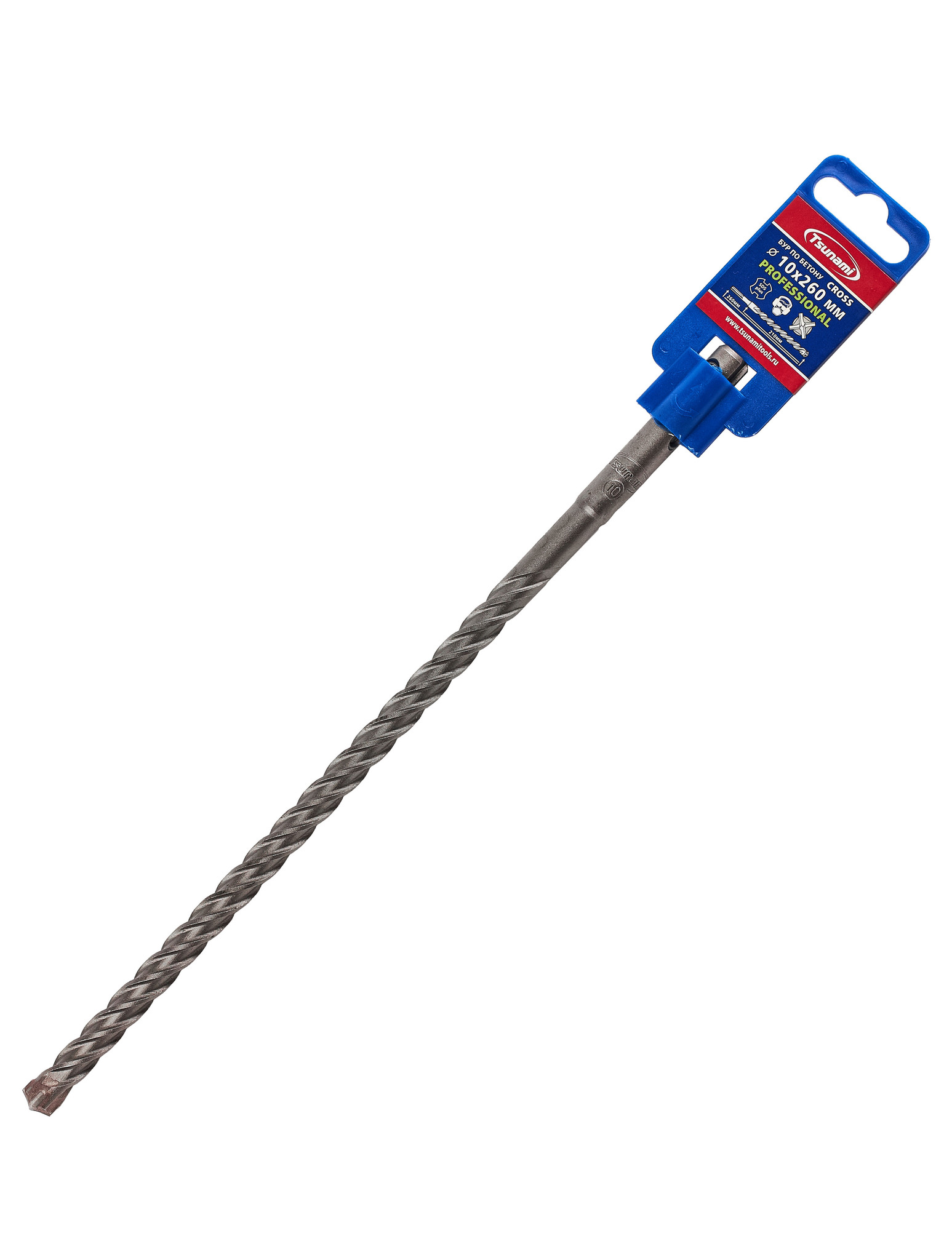 Бур PROFESSIONAL TSUNAMI 10х260 мм с хвостовиком SDS-plus — это высококачественный инструмент профессионального уровня, предназначенный для сверления бетона, железобетона, гранита, камня, клинкера и кирпича.