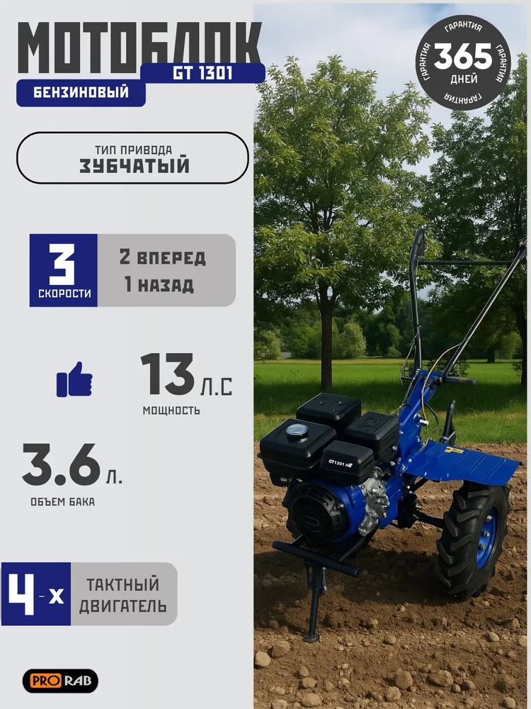 Мотоблок бензиновый GT 1301, 13 л.с.